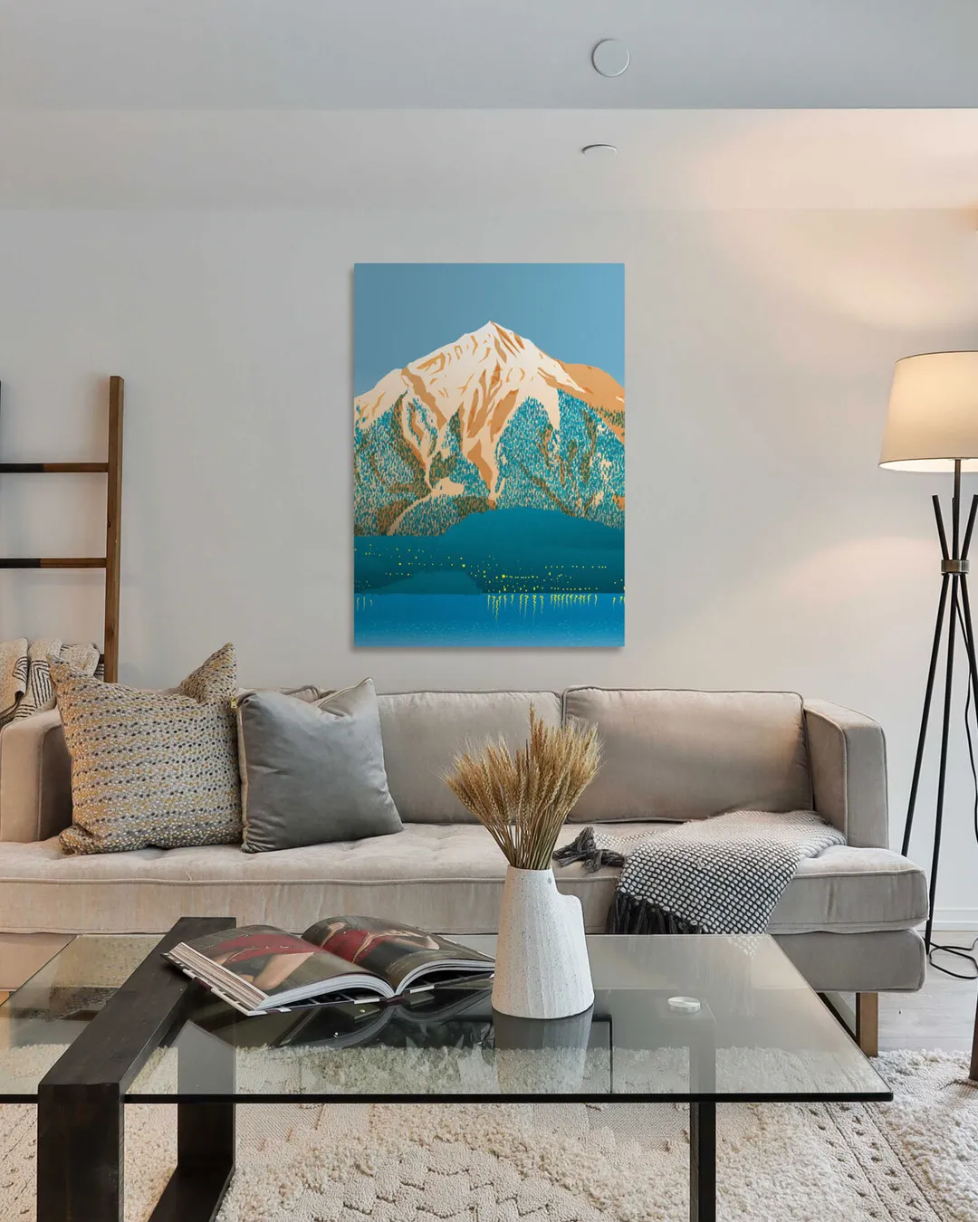 The pictures are mounted on an aluminum dibond board. Two U-profiles are attached to the back of the panel, which allow easy hanging using two nails or screws.